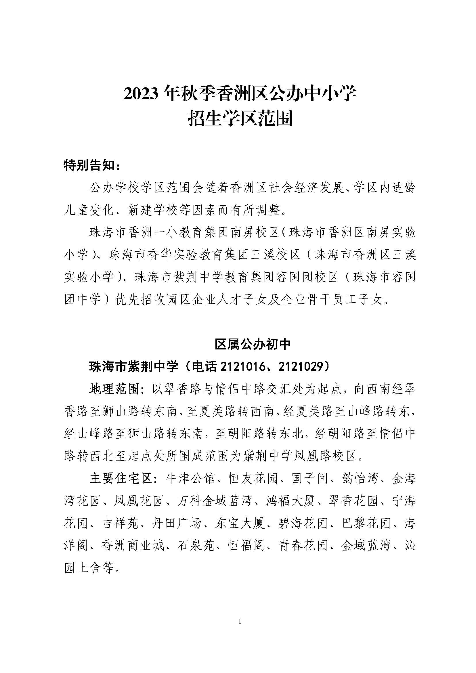 關(guān)于印發(fā)2023年秋季香洲區(qū)公辦中小學(xué)招生學(xué)區(qū)范圍的通知
